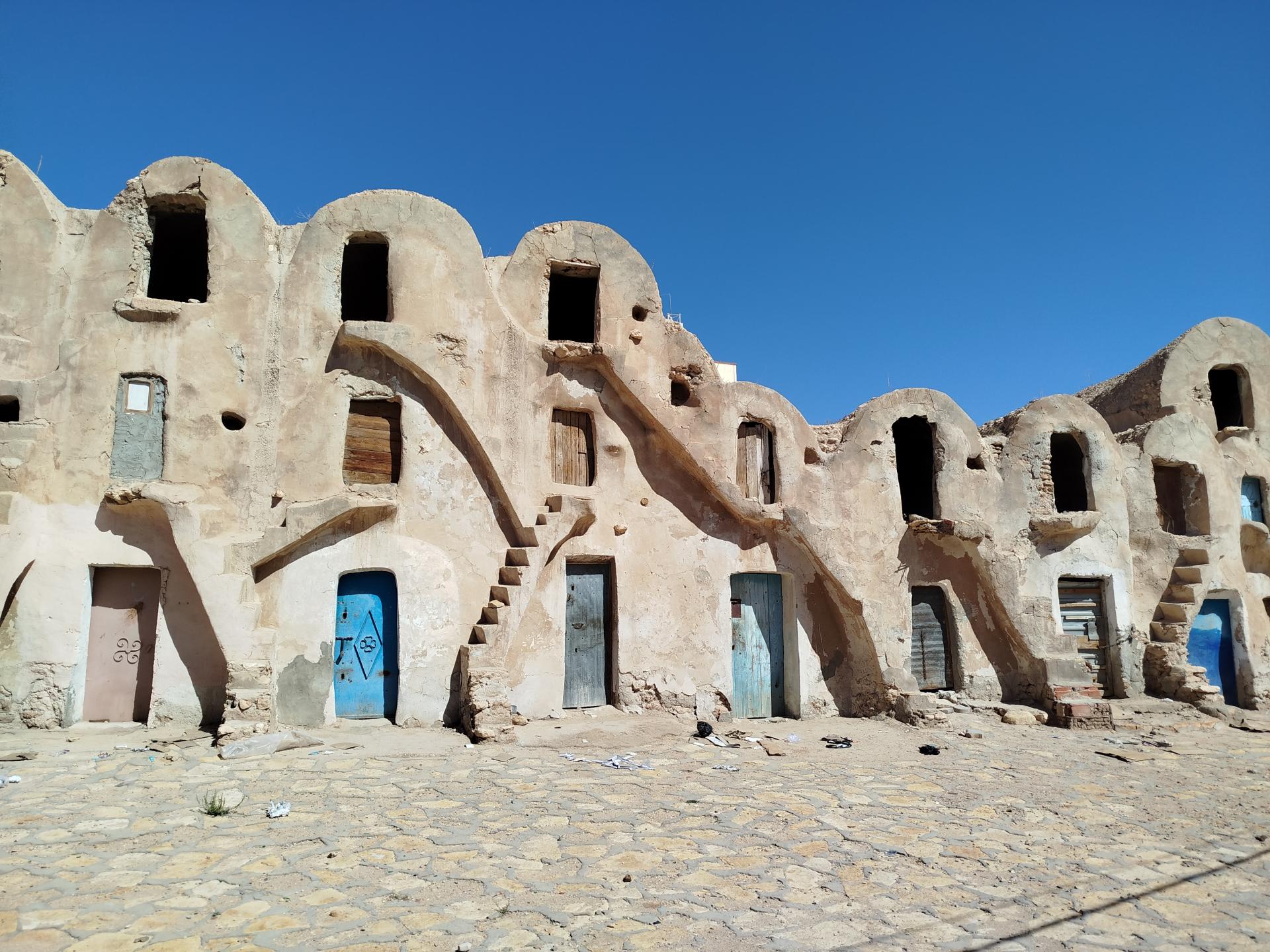 En la región del interior cerca de Tataouine surgen los asombrosos edificios llamados Ksour, los graneros colectivos fortificados de los nómadas saharianos, se parecen a grandes colmenas formadas por celdas superpuestas en torno a un gran patio.