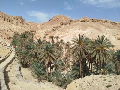 Tozeur, la ciudad surgida del desierto, se asienta junto a un enorme oasis de varios cientos de miles de palmeras. Muy cerca se encuentran Chebika, Tamerza y Mides, oasis en un paisaje montañoso que se cuentan entre los lugares más emocionantes del sur de Túnez. En Chebika, un río desciende por la ladera de una montaña escarpada formando cascadas y riachuelos. La antigua ciudad de Tamerza, abandonada como si fuera un pueblo fantasma, se encuentra frente a un grandioso paisaje de montañas; su exhuberante oasis recibe las aguas de una gran cascada. Por último, Mides, suspendida al borde de un vertiginoso cañón, ofrece un espectáculo impresionante. Alojamiento en Tozeour