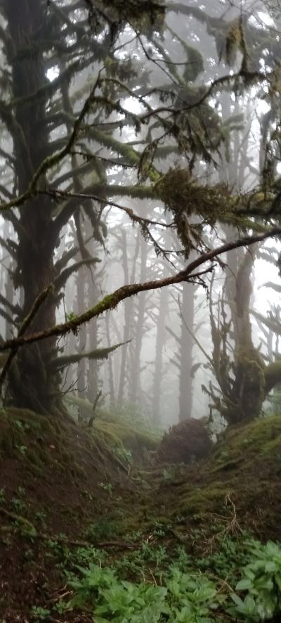 En nuestra ruta por el Monteverde herreño veremos este bosque joven y en crecimiento, siendo protagonistas los brezos y ya cogiendo altura dominarán los laureles y barbusanos. Al mismo tiempo el sotobosque se viste se manchones de jorjal y delicadas nomeolvides de color celeste.