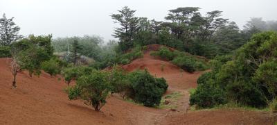 En el denso sotobosque encontraremos una jara endémica rosada, cuya floración aprovechan mariposas y abejorros.